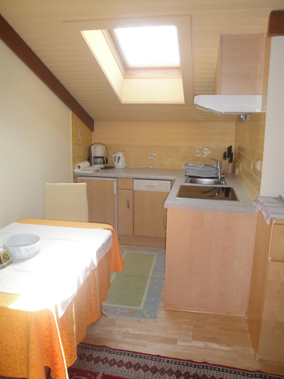 Das Appartement im 2. Stock bietet ein Doppelbett, eine bequeme Ausziehcouch, Dusche und WC. Die helle Kochnische ist mit Herd, Kühlschrank und Geschirrspüler komplett ausgestattet. Zimmersafe, Telefon, Radio und Kabel-TV sind inklusive. Handtücher sowie Bett- und Tischwäsche stellen wir bereit.