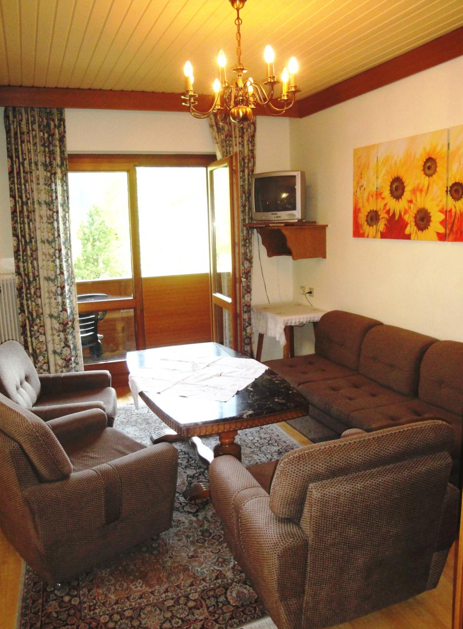 Das Appartement im 2. Stock bietet ein großes Schlafzimmer (Doppel- und Einzelbett), einen Wohnbereich mit Schlafcouch, Vorraum, Bad mit Wanne, Doppelwaschbecken und WC. Die großzügige Wohnküche mit Herd und Geschirrspüler lädt zu gemütlichen Abenden ein. Süd-Balkon, Telefon, Radio und Kabel-TV sind vorhanden.